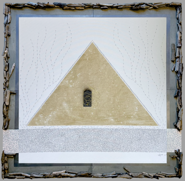 Feutre sur Toile, fils dorés, sable du Sahara et paillettes dorées. 100 x 100 cm