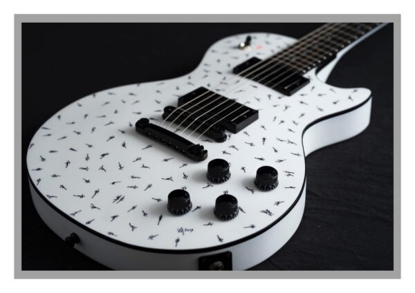Commande pour le décor d’une guitare électrique réalisée par un luthier Genevois.Exemplaire unique et personnalisé.
